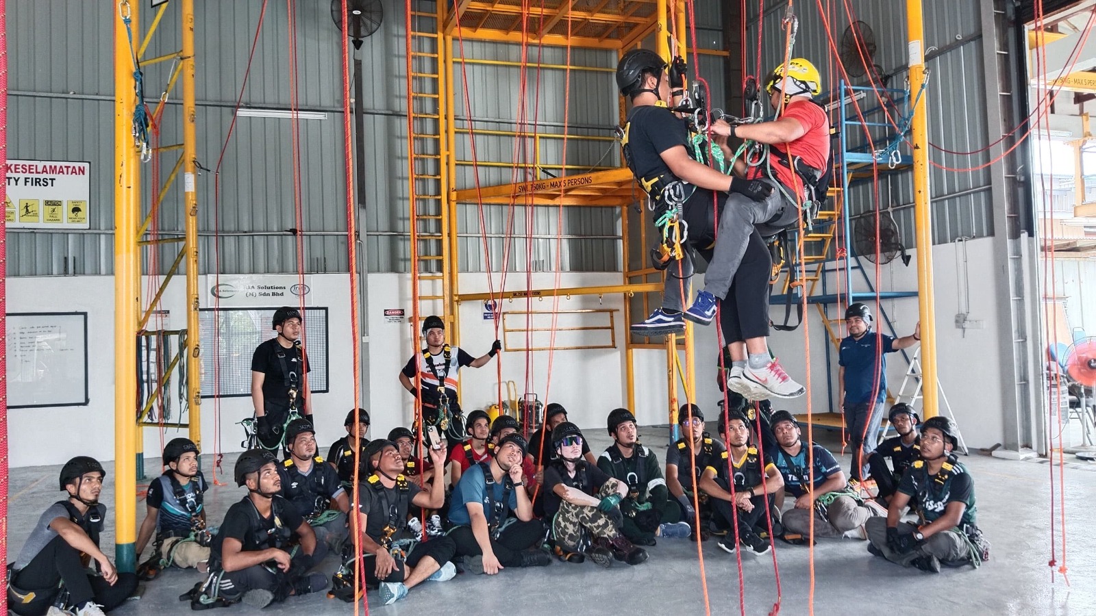 The Rope Access Course is a sponsored program under Yayasan Hasanah with a grant amounting to RM227,000. In early January 2025, UMK Holdings conducted a participant selection session that received an overwhelming response from three East Coast states, namely Kelantan, Terengganu, and Pahang. However, only 26 participants were selected to join the course. Participants are required to attend classes for two (2) months, from February to March, and the On Job Training (OJT) will take place in April 2025.
